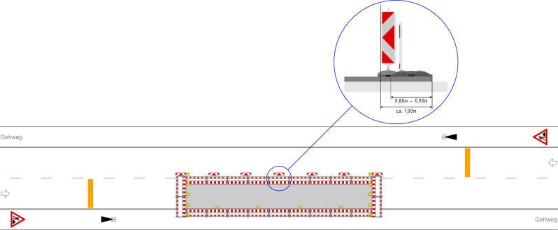 Um dieses Problem rechtssicher zu lösen, müssen Sie auf die ZTV-SA (Zusätzliche Technische Vertragsbedingungen und Richtlinien für die Sicherung von Arbeitsstellen an Straßen) zurückgreifen.